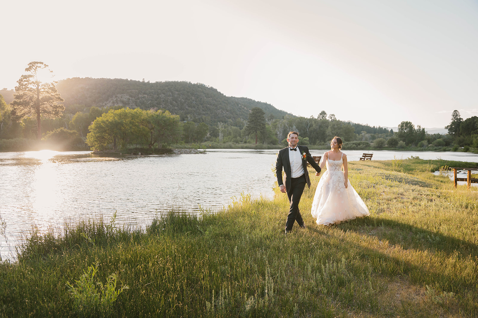 Exchange vows beside the sparkling waters of LePlatt’s Pond, framed by towering pines and sweeping Colorado mountain views.